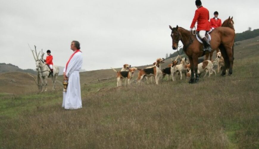 “I remember colorful Maryland fox hunts, too, preceded by the blessing of the hounds. For more than 100 years, fox hunting clubs of Maryland have come to countryside churches for an Episcopal blessing on Thanksgiving Day, and modern times have seen the custom grow beyond a dedicated few in dark leather boots, white breeches, red coats, and black hunters’ caps. One of the oldest of them still occurs at the Saint James Episcopal Church in Monkton, where generations of spectators have gathered annually for decades to watch riders and hounds observe the old English tradition.