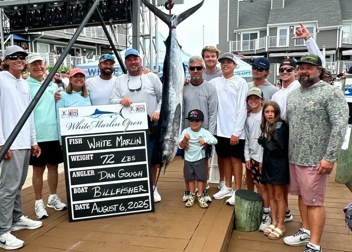 Billfisher, a boat based in Ocean City, landed a 72-pound white marlin Wednesday that topped the tournament’s most lucrative leaderboard, earning $3.9 million. Angler Dan Gough hooked the fish, which measured 70½ inches—just a half-inch over the qualifying length—and weighed two pounds over the 70-pound minimum.