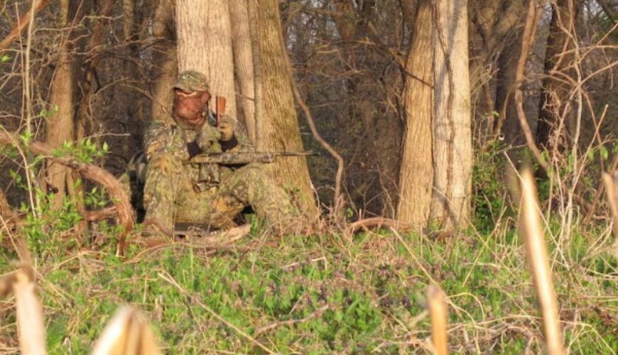 Once you find that perfect spot, sit on your behind with your knees up and your shotgun balanced on your knees. You want to be comfortable so you can minimize movement. A thick camo seat cushion can be helpful in maximizing comfort. If right-handed, sit with your left shoulder toward the direction from which you think the gobbler will approach. This will allow you to swing the gun more easily to the left or the right if you need to. (If you’re left-handed, do just the opposite.)