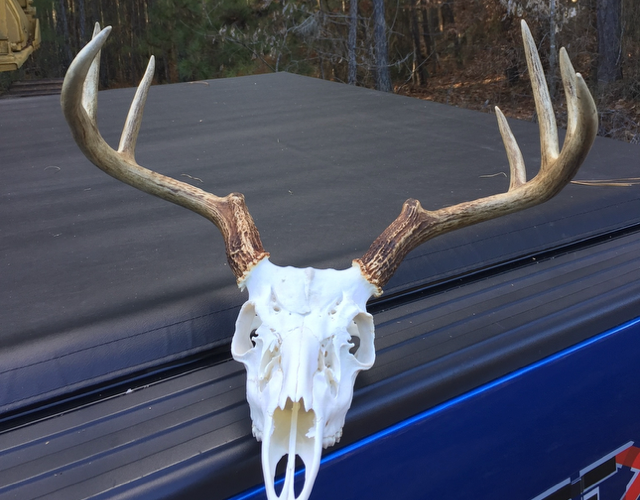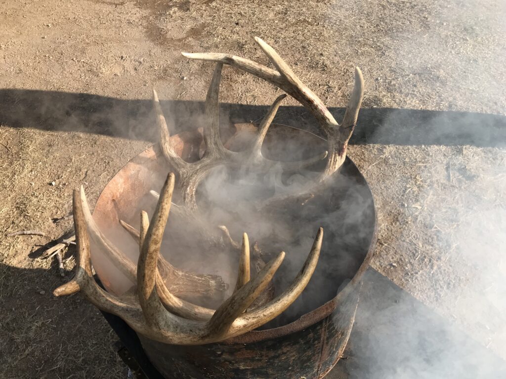 Before boiling, wrap the antler bases tightly with plastic wrap and foil to protect their color. Use electrical tape to hold everything in place. If possible, position the skull so the antlers stay above the water during the boil.