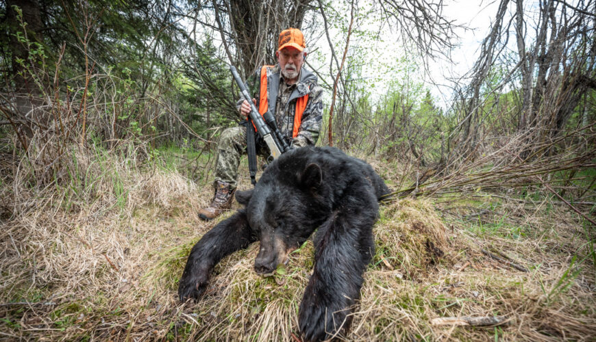 Irving Torchinsky waited patiently in his hunting stand, enduring the Canadian cold for a chance at hunting the bear. He managed to get there despite being 100% disabled, with no feeling whatsoever in the bottom of his feet — he’s learned to walk okay while keeping balance but says, “standing still is the most difficult.” The 84-year-old hunter held his Henry lever action .308 wildlife edition (a suitable replacement for a lefty who finds it nearly impossible to find a proper bolt-action) while watching the beavers hanging from the trees, all serving as bait for the bears. While it wasn’t the exact situation he had dreamed about when it came to hunting a bear, it was still better than he could have hoped for at this point in his life.
