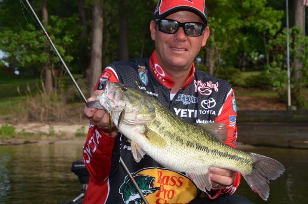 Kevin VanDam, a four-time Bassmaster Classic champion from Kalamazoo, Mich., shows off a bass he caught on a spinnerbait while fishing at Toledo Bend Reservoir. John N. Felsher Photo